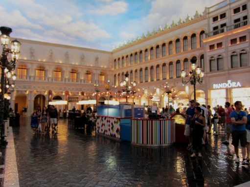 Dann geht der Marathon weiter: wir parken im Venitian, schlendern an den Gondeln und Geschäften vorbei, enbenso im Palazzo, dann ins Mirage, wo ich eigentlich in den Secret Garden wollte. Die wollen aber 17 $ Eintritt pro Person (!), das ist uns die Sache nicht wert. In Las Vegas kommen wir uns immer sehr arm vor, wenn wir an den Luxus-Geschäften vorbei gehen und all die reichen Menschen sehen. Andererseits - wenn ich all die einsamen Ehefrauen mit ihren gelifteten Gesichtern und ihren Folter-Schuhen sehe, möchte ich nicht tauschen!
