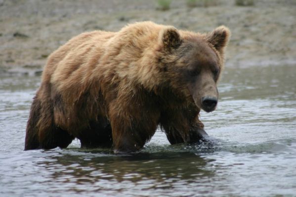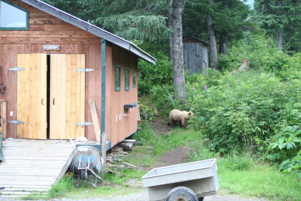 Heute stand der Harding Icefield Trail auf dem Programm. Es war bewölkt, aber zum Glück trocken. Der Weg startet direkt an den Trailheads zum Exit Gletscher. Die gesamte Strecke beträgt vier Meilen, mit einer Höhendifferenz von 1000 m. Bis zur Meile 1.5 war dieser Weg das perfekte Kraftausdauertraining. Und nach der Kraftausdauer kam die Kondition an die Reihe. Außer dass der Weg sehr steil war, gings im unteren Teil über Felsen, die doch sehr hoch waren. Der Boden und auch die Felsen waren wegen des Regens noch naß, was den Aufstieg und vor allen Dingen den späteren Abstieg erschwerte. Zum Glück hatten wir unsere Wanderstöcke dabei, die bei diesem Weg eifrig zum Einsatz kamen. Nach diesen ätzenden Felspassagen im Wald wechselte nach 1.5 Meilen die Umgebung und wir befanden uns auf einer hochalpinen Wiese. Daran änderte sich für den Rest des Weges auch nichts mehr. Als wir am Anfang dieses „Wiesentrails“ waren, konnten wir tief unten ein Bären sehen. Allerdings nicht nur den Bären, auch der Weg war sehr gut einzusehen. Der Bär hielt sich ziemlich nahe am Weg auf. Nur leider kamen im diesem Moment keine Wanderer daher getappst.