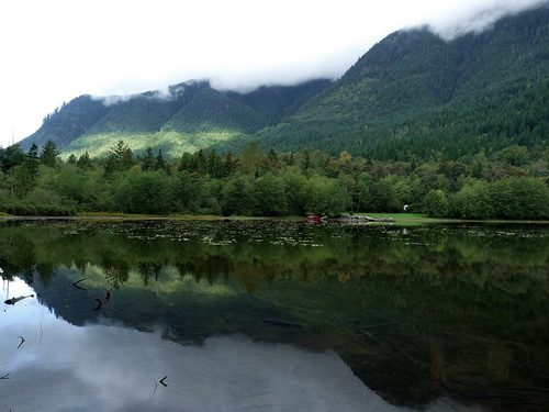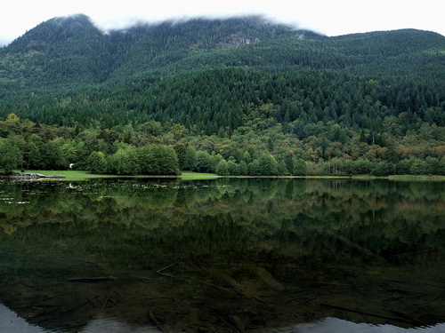 So, wieder Sachen packen. Eigentlich wollten wir im Hotel auch nochmal in die heissen Quellen, machen wir aber doch nicht. Hier 2 Fotos vom Harrison Lake am frühen Morgen. Es ist noch bewölkt, aber es regnet nicht mehr!!