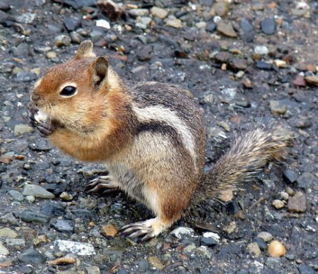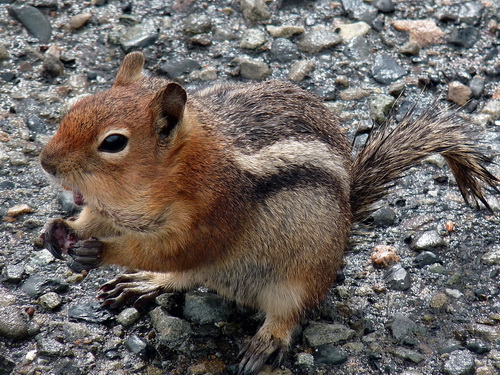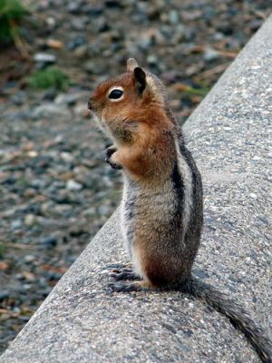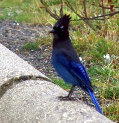 Es ist ziemlich ungemütlich hier. Der Regenschirm hält dem Wind nicht stand, denn es weht hier ziemlich kräftig. Aber plötzlich bekommen wir Besuch. Ein blauer Vogel und ein Erdhörnchen suchen unsere Nähe!! Wir schliessen Freundschaft und unterhalten uns ein wenig. Der Vogel hat einen merkwürdigen Akzent, aber wir fragen mehrmals nach. Das Erdhörnchen fragt nach essen,machen wir aber nicht, denn man soll ja keine Tiere füttern, was überall auf Hinweisschildern steht.