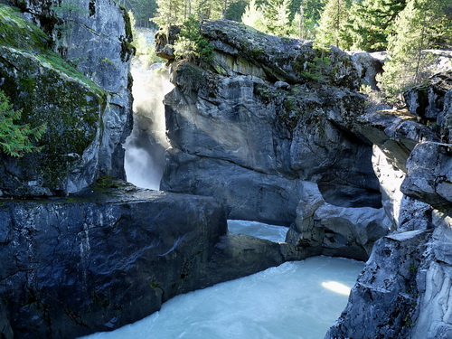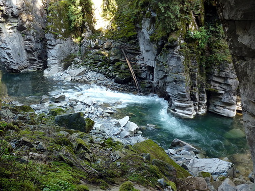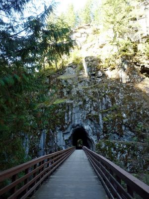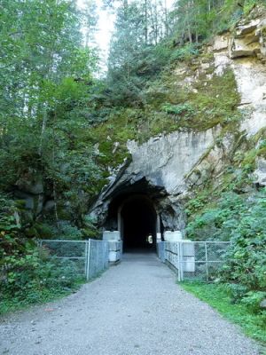 Dann gehts zu den Coquihalla Tunnels. Ein 3,5km langer Trail durch ein Schluchtensystem. Es scheint jetzt auch die Sonne und wir ziehen uns auf dem Parkplatz noch kurze Hosen an.