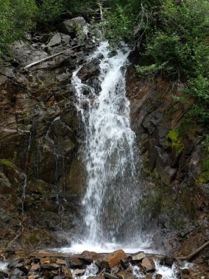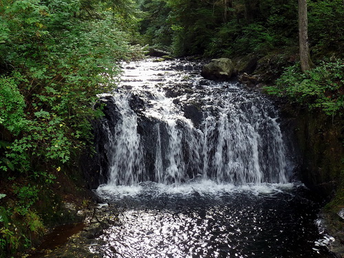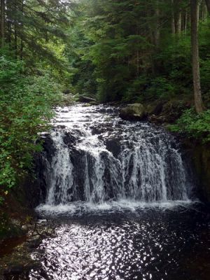 Der Trail zu den Wasserfällen soll laut Karte aus dem Internet nur 30 Min. sein. Wir laufen und laufen, aber auf ebenem Weg durch Wald. Dann ist der Trail aber ziemlich zugewachsen. Alle 10 Meter liegt ein umgestürzter Baum auf dem Weg. Wird zu einer richtigen Kletterpartie hier. Keine Ahnung, ob das hier richtig ist. Aber wir laufen weiter. Und, da sind sie. Die Rolley Lake Falls. Nicht sonderlich gross, aber fotogen!!!