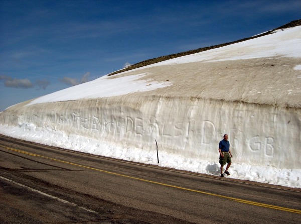 Kurz vor der Grenze von Montana hieß es scharf rechs abbiegen auf der 212, diese fuhren wir bis zum Beartooth Pass mit seiner 3337 m Höhe.  War ganz schön hart, durch den Schnee. Also ehrlich Leute soviel Schnee wie in diesem Sommerurlaub habe ich den ganzen Winter über nicht gesehen. Dafür war es aber von den Temperaturen angenehm. Ja und da waren wir nun mitten im Nirgentwo. Es war echt schön diese Aussicht zu genießen. Hier oben kehrten wir wieder um, denn wir wollten ja zum Yellowstone Nat. Park.
