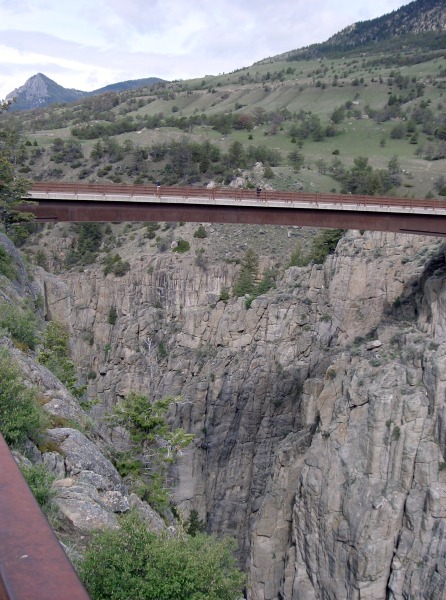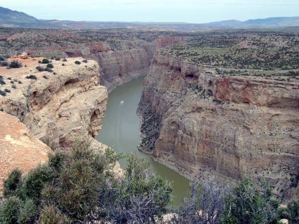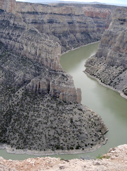 Die Weiterfahrt führte uns zu atemberaubenden Schluchten und Canyons die  wir auf dieser Reise gesehen haben. Das Bighorn Canyon National Recreation Area ist ein Naherholungsgebiet im Bereich der Bundesstaaten von Wyoming und Montana. Der schlammige Bighorn River wurde 1967 durch den Bau des Yellowtail-Damms auf einer Länge von 114 Kilometern aufgestaut. Wegen seiner braunen, leicht grünlichen Färbung erfreut sich der Fluss keiner besonderen touristischen Beliebtheit, auch ist die Umgebung karg und abseitig gelegen. Es ist ein Landschaftsbild, wie man es eher in Utah erwartet. Der interessanteste Bereich befindet sich in Wyoming. Ausgehend vom Bighorn Canyon Visitor Center in der Nähe von Lovell führt eine Straße Richtung Norden  am Canyon Rand entlang, vorbei an mehreren Aussichtspunkten, wobei wir den Devil Canyon Overlook am schönsten fanden.