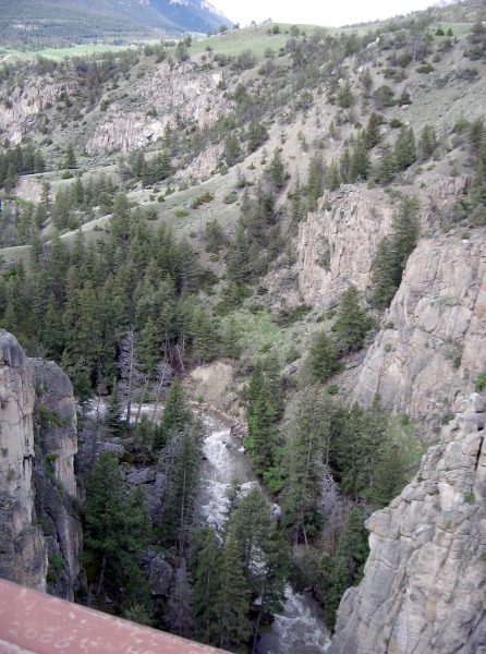 In Tower- Roosevelt bogen wir südlich ab zum Grand Canyon of the Yellowstone, hielten aber noch bei den Towers Falls an und bekamen sogar sofort einen Parkplatz, weil jemand weg gefahren ist. Die Wanderung zum Fuß der Fälle ersparten wir uns.