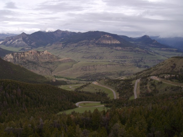 Heute ist ja Sonntag, der Tag des Herren, oder so ähnlich. Also machen wir uns langsam auf den Weg, eines der Höhepunkte unseres Trips, zu finden. Den Yellowstons-National-Park. Da wo früher immer Jogi-Bär herumgelaufen ist. Na und er warnte ja auch noch lange vor Waldbrände. Wir wollten über Cooke City zur Canyon Village von Norden herein fahren.  Das bedeutete das wir in Cody auf der 120 in nördlicher Richtung abbogen. Nach ca. 16 Meilen mussten wir links auf der 296 oder besser den Chief Joseph Scenic Hwy abbiegen.