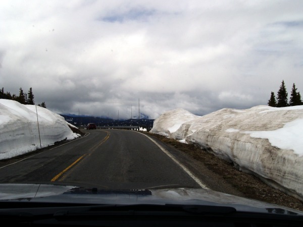 Also diese Strecke kann ich nur jedem empfehlen, der die Weite und Größe der Landschaft hier verspüren und erleben will. "You will it beleave". Die Bighorn Scenic Byway führte uns in Serpertinen durch Schneelandschaften auf die Passhöhe von 2874 Metern.