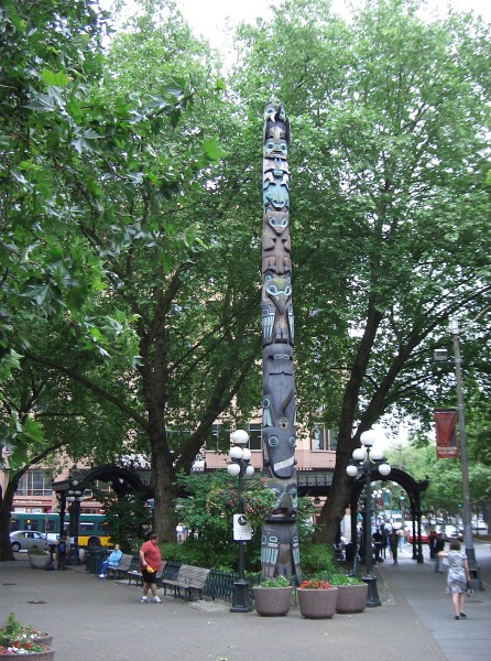 Seattle trägt die Beinamen The Emerald City („Die Smaragdstadt“), was eine Anspielung auf das viele Grün in der Stadt ist, und Rain City – das, obwohl der Niederschlag geringer ist als in vielen anderen US-amerikanischen Städten. Der Spitzname kommt von den vielen wolkenreichen und regnerischen Tagen im Jahr. Und das sollten wir auch wieder zum Spüren bekommen. Als wir den Pioneer Square mit seinen Totenpflälen besucht hatten mussten wir vor dem Regen in ein Kaufhaus flüchten.