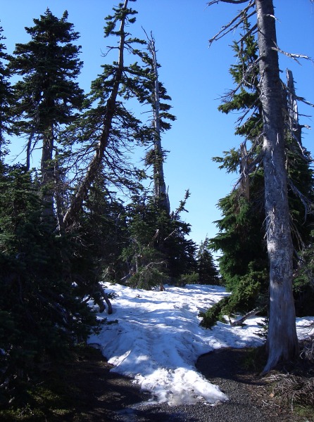 Weil die Straße zum Obstruction Peak noch geschlossen war hatte ich dann wieder die springende Idee mit einem Trail, ganz einfach und kurz-. Kurz scheint er gewesen zu sein, wenn Jörn nicht mal wieder die Abzweigung verpasst hätte und dadurch noch eine Ehrenrunde von 2 Meilen lief. Ansonsten ist der Trail nur trainierten Freunden zu empfehlen.
