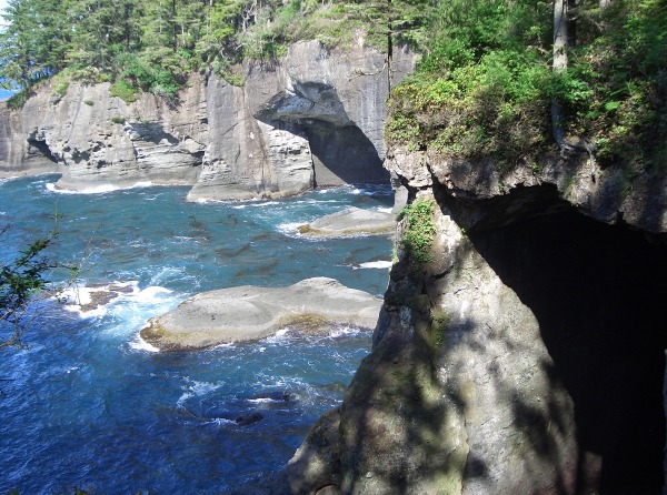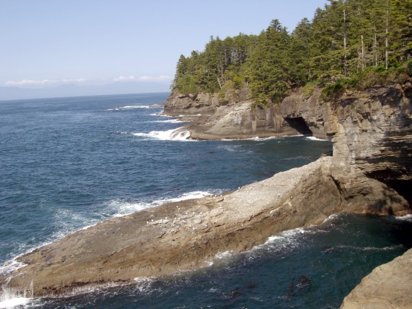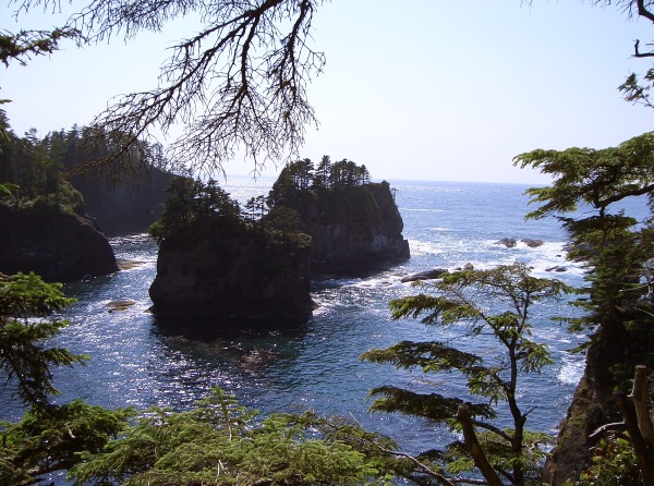 Wer sich nun lieber in einem Thermalbad entspannen möchte, kann sich für die Sol Duc Hot Springs entscheiden, wir musten aber weiter fahren. Denn ich hatte wieder eine gute Idee. Also wenn ich noch mal einen Satz mit "ich habe eine Idee" sage, will Jörn ganz weit weg laufen. Ich wollte noch kurz zum Cape-Flattery, den angeblich nordwestliche Punkt des US-Festlandes, was aber umstritten ist da es ja auch noch irgendwie Alaska gibt, oder habe ich in Geografie mal wieder nicht aufgepasst???? Na sollen sich andere darum streiten, erst einmal fahren wir einen wenn auch schönen Umweg. Der Highway 112 schlängelt sich an der Küste der Juan-de-Fuca-Straße entlang bis zum ganz im Nordwesten gelegenen Makah-Indianerreservat. Vom Parkplatz am Ende der Straße führt ein Pfad über Stock und Stein in einer halben Stunde bis zum Kap. Es sieht fast so aus, als ob hier das Ende der Welt wäre. Gegenüber liegt Tatoosh Island mit seinem Leuchtturm. Der 1857 erbaute Turm ist einer der ältesten noch in Betrieb befindlichen Leuchttürme an der US-Westküste.