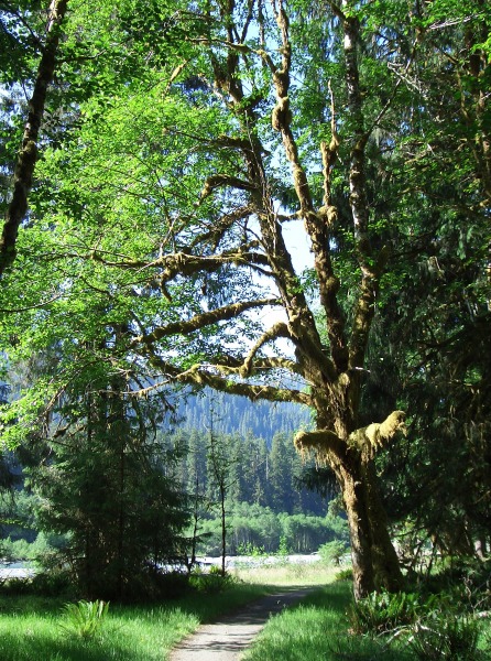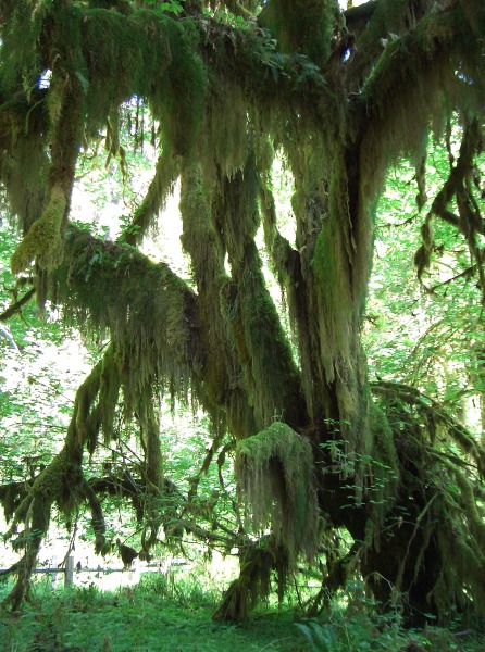 .....wilder Strand und grüne WälderNach einer ruhigen Nacht trotz der ca. 40 Harley-Davidson-Fahrer, schmeckte das Frühstück, was wir neben an im sogenannten Schuppen zu uns nahmen, wieder mal sehr gut genau wie das Abendessen davor. Einfach aber sehr lecker gemacht. Dann ging es weiter in den Regenwald, auch diesmal gab es nur wieder Wald und kein Regen. Zum Hoh Rain Visitor Center gelangt man mit dem Auto nur auf dem Abzweig südlich von Forks (Upper Hoh Road). Dort beginnen viele schöne Wanderwege durch den bizarren Regenwald. Den 17,5 Meilen-langen haben wir uns dann aber doch geschenkt und sind lieben die beiden Kürzeren gelaufen, Hall of Mosses Trail und Spruce Nature Trail. Uns gefiel besonders schön der Hall of Moss Trail. Er führt durch ein immergrünes, mit Moosen, Flechten und Farnen dicht bewachsenes Stück Wald und ist nur ca 1,2 km lang.