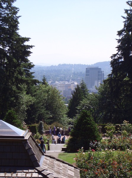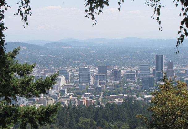 ….auf den Spuren von Lewis und Clark Heute Morgen gab es für unsere Verhältnisse verspätet das Frühstück, denn es war Sonntag. Dabei konnten wir aber draußen die Kolibris an Ihrer Tränke beobachten. Von unserem schön gelegenen Hotel, ging es dann weiter über Astoria nach Portland. Unterwegs fallen uns die vielen Flächen mit gerodeten Wald auf. Hier wurde der ganze Wald flach gelegt. Und nun musst die Zeit wieder neue Bäume wachsen lassen, bisher ist aber nur Gras gewachsen, und überall blühen die Wildblumen.