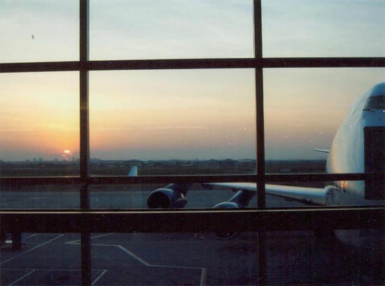 Nach einiger Zeit kamen Busse, die uns die paar Meter zum Flughafengebäude brachten.