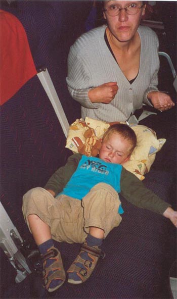 Kaum im Flugzeug eingestiegen war Florian auch schon eingeschlafen. Das sollte sich Gott sei Dank bis zu Hause fortsetzten.