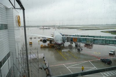 Eine Stunde vor Weckerklingeln sind wir wach und Robert erzählt, er habe von Horcruxen geträumt. :verwirrt: Dies bedeutet entweder, er hat den Harry Potter zu intensiv gelesen oder er ist nun total urlaubsreif. Um 5:15 Uhr quälen wir uns aus dem Bett und pünktlich um 7 Uhr steht unser Taxi vor der Tür, das uns zum Flughafen bringen soll. Auf Daddy’s Shuttleservice haben wir in diesem Jahr verzichtet, da es nicht wirklich ein Vergnügen ist, mit zwei Koffern und zwei Handgepäckstücken eingequetscht in einem französischen Kleinwagen älteren Baujahrs zum Flughafen zu schaukeln. :wink: Wie immer ist auf der A2 Richtung Hannover Stau und so fährt der Taxifahrer uns sicher über Land nach Langenhagen.