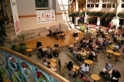Schon ein imposanter Bau! Wir wollen natürlich wissen, was dieses Gebäude beherbergt und gehen rein. Erstmal müssen wir unsere Taschen durchleuchten lassen und finden uns dann zwischen Souvenirgeschäften und Food Court wieder. Ein Eis wäre jetzt nicht schlecht! Das geübte Auge findet sofort den Ben & Jerry’s und kurze Zeit später machen wir es uns mit unserem Eis gemütlich und lauschen der Live-Musik :gitarre::