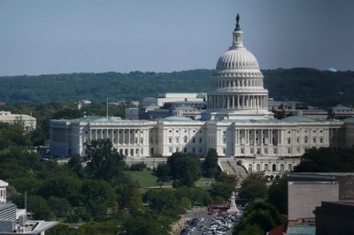 Nach der glücklichen Landung in Washington düsen wir zur Immigration, wo die Schlange gar nicht soooo lang ist, aber irgendwie scheinen die Officer heute keine rechte Lust zu haben, denn wir müssen fast 1 ½ Stunden anstehen, bevor wir endlich vortreten dürfen und nach dem Abgeben unserer Fingerabdrücke und dem Knipsen der Fotos unsere Stempel erhalten. Unsere Koffer waren schon vom Laufband gehoben worden und warten auf uns. Ich frage mich, ob unser Chauffeur auch auf uns wartete? Zum ersten Mal hatten wir uns den Luxus eines Limousine-Services gegönnt und tatsächlich, dort steht unser Fahrer mit unserem Namensschild. Wir müssen ihm zwar erklären, wie er unsere beiden Koffer am besten in den Kofferraum bekommt, aber ansonsten ist die Fahrt nett. Auf der Rückbank sitzend und das „complimentary“ Wasser schlürfend warten wir gespannt darauf, dass die Stadt vor uns auftaucht. Die Überraschung ist, dass Washington gar keine so richtige Skyline hat und wir schon in der Stadt ankommen, bevor wir es richtig mitbekommen.