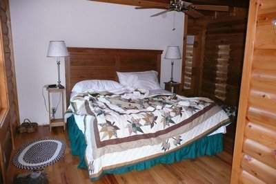Das ist richtig schön hier, allerdings nichts für Leute, die Action gewöhnt sind! Hier ist absolut nix los! Wir betreten die Veranda und sehen ein Schild, auf dem wir namentlich begrüßt werden. Wir treten ein und stehen quasi im Wohnzimmer, wie das halt in USA so ist. Die Herrin des Hauses stellt sich uns vor und entschuldigt gleich ihren Mann, der sehr bedauert, nicht da sein zu können, weil er den Enkel nach Hause bringt. Gleichzeitig werden wir allen Leuten vorgestellt, die gerade im Wohnraum sitzen. Wenn ich mich richtig erinnere waren das die Schwester, die Mutter und die Pastorin. Margaret, die Hausherrin, berichtet, dass wir die einzigen Gäste für diese Nacht sind und zeigt uns bereitwillig das ganze Haus, das im Übrigen gerade mal ein Jahr alt ist. Es ist ein absoluter Traum und das ist unser Zimmer: