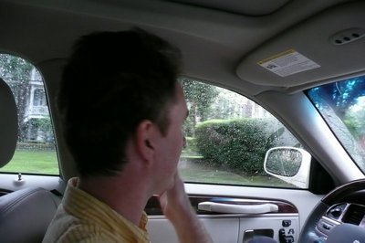 Was soll ich sagen? Erscheint doch tatsächlich ein kleiner heller Fleck am Himmel und der Regen hört fast auf. Wir sehen einen Silberstreif am Horizont und fahren optimistisch nach Savannah rein. Überflüssig zu erwähnen, dass es hier wieder gießt…  :koch: Was hat der Wettergott eigentlich gegen uns? Noch nie hat es in einem unserer USA-Urlaube so lange am Stück geregnet. Das spricht dafür, dass wir künftig wieder in dem von uns bevorzugten Frühjahr rüberfliegen. Aber nicht vom Thema abschweifen. Wir entdecken so eine Art Tourist Info und halten dort an. Sie scheint geöffnet zu sein, aber wir finden es etwas befremdlich, dass hier gerade die Fenster mit Brettern vernagelt werden. Sollte der Hurricane nun doch auf die Küste zusteuern? Schlotter…  :hilfe: Wir erkundigen uns nach Besichtigungsmöglichkeiten in Savannah und überlegen einen Moment, ob wir eine geführte Sightseeing Tour per Bus mitmachen. Aber bei dem Wetter sieht man eh nix und so beschließen wir, mit dem Auto durch Savannah zu fahren. Meine verzweifelten Fotoversuche sehen so aus: