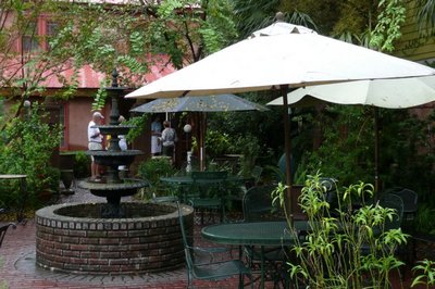 In unserem Appartement liegt ein Gästebuch, in dem von den anderen Gästen u. a. häufiger ein Restaurant namens La Bodega empfohlen wird. Wir entscheiden uns, hier zum Abendessen einzukehren. Es ist nicht ganz billig und von innen sieht es eher rustikal aus, aber das Essen ist sehr gut und voller Ideen. Hier gibt es auf keinen Fall die allseits bekannte sog. amerikanische Küche. Angeblich soll man sehr gut seafood essen können, aber da Robert sich dem Fisch aus Prinzip verweigert und ich heute keine Lust drauf habe, wählen wir beide etwas anderes. Leider habe ich unser Essen nicht fotografiert! Robert bekommt Schweinefilet mit einer Art Gries, Obst und Kohl. Laut seiner Aussage schmeckt es sehr gut! Ich habe schon seit Tagen unglaubliche Gelüste auf Pasta und bestelle mir Chicken Pesto Pasta. Als man mir eine große Suppenschüssel vor die Nase stellt, muss ich sicher etwas dumm aus der Wäsche geschaut haben.  :kratz: Hinter Chicken Pesto Pasta verbirgt sich eine Art Pestosuppe, in der eine halbe Tonne Spaghetti, Hähnchenstücke und Kirschtomaten schwimmen. Auch wenn es nicht so aussieht, schmeckt es sehr lecker.
