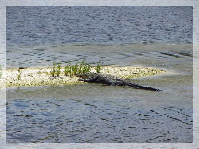 Auf der Fahrt zum Strand begegeneten wir in der Feshwater Lagoon unserem ersten Alligator des Urlaubs.