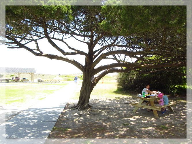 Am Strand angekommen fanden wir einen sehr schönen Picknicktisch unter einen Baum, wo wir dann unsere Leckereien vertilgten.