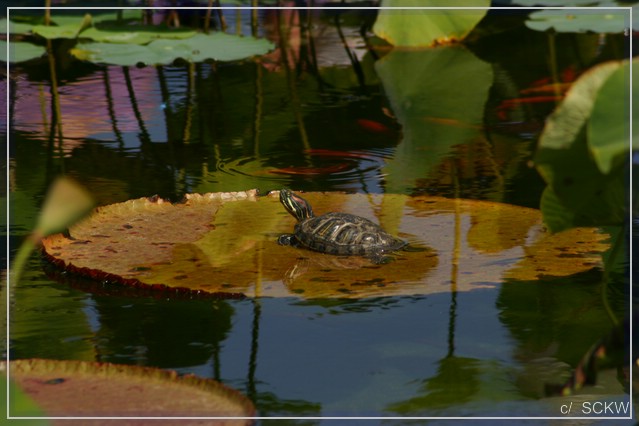 Nach etlichen Experimenten mit der Pflanzenfotografie lockt uns die Sonne wieder nach draußen. Hier gibt es ja auch noch Seerosen abzubilden und die Bewohner des Ponds.