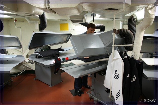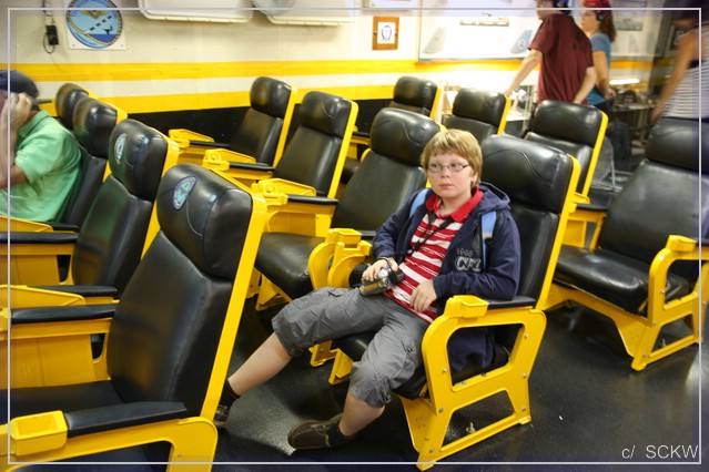 Kerlie wäre gern auch in einen der Flugsimulatoren gestiegen, aber dort herrschte ziemlicher Andrang. Und ich staune über die "Stadt" im Schiff: Wäscherei, Hospital, Kirche, Küchen...
