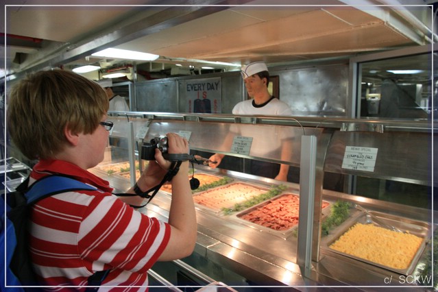 Den Gatten faszinieren am meisten Maschinenraum und die Flugzeuge. Die Tour zur Brücke –hier "The Island" genannt – ist auch sehr interessant.