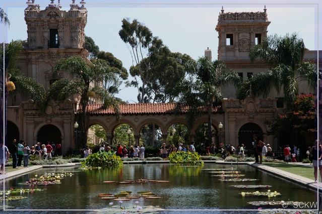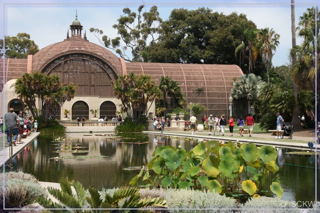 Nach einer kurzen Verschnaufspause beim Old Globe Theater kommen wir zum Lily Pond und dem Botanical Building. Das ist eines der weltgrößten Holzlatten-Bauten.