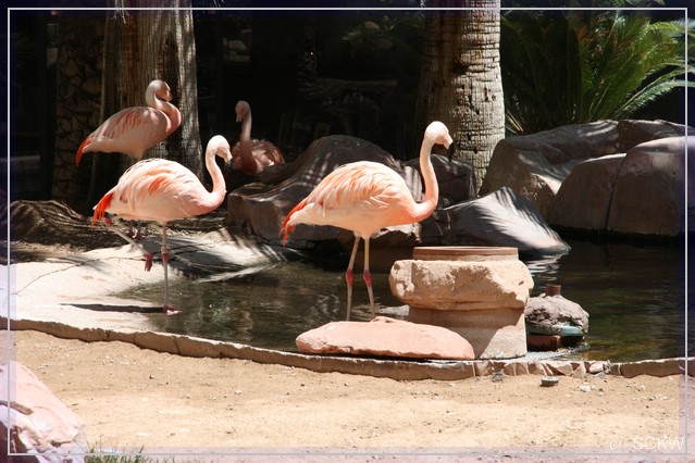 Die Flamingos werden bewundert, ebenso Schildkröten, Schwäne und Kois. Die Sonne lacht, die Temperatur ist entsprechend. Wie gut, dass hier viele Palmen Schatten spenden. Doch vor’m Relaxen ist erstmal Shopping angesagt. Ich suche nach einem Kleid für heute abend, ein paar Wrangler fehlen auch noch. Das bleiben aber nicht die einzigen Tüten...  :pfeifen: