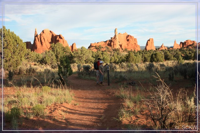 Wir fahren weiter bis zur US89, folgen der ebenfalls nach Norden bis zum Abzweig der UT 12. Im Red Canyon soll es jetzt aber einen längeren Break mit Auslauf geben, beginnend mit dem Phototrail. Hitze als Ausrede kann keiner mehr anbringen, Kerlie jedoch ist entschlummert.  :schlafen: Wir lassen ihn schlafen und machen uns allein auf den Weg.