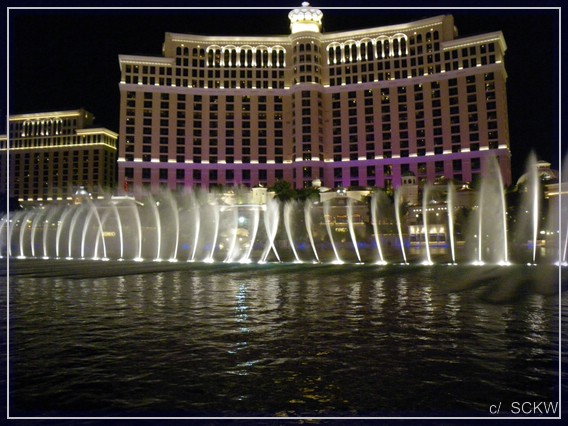 Schließlich haben die Jungs doch genug von den Wasserspielen und wir machen uns auf den Rückweg. Während der Gatte mit Junior noch Drinks-to- go besorgt, drehe ich eine kleine Runde durchs Kasino. Auch hier ist nicht allzu viel los und das rechte Vegas-Gefühl will nicht aufkommen. Also genießen wir wieder unser Zimmer mit Aussicht. Ich hoffe – vergebens - auf ein paar mehr Wasserspiele von oben. Um Mitternacht scheint damit auch Schluß zu sein.