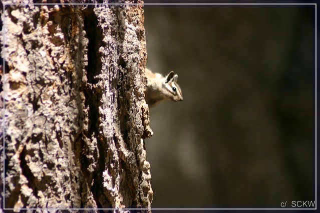 „ACTIVE BEAR AREA“ warnt uns ein Schild, aber es lassen sich nur ein paar Vögel und Streifenhörnchen blicken. Letztere sind übrigens viel scheuer als ihre Verwandten an stärker besuchten Plätzen.