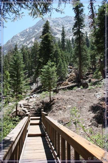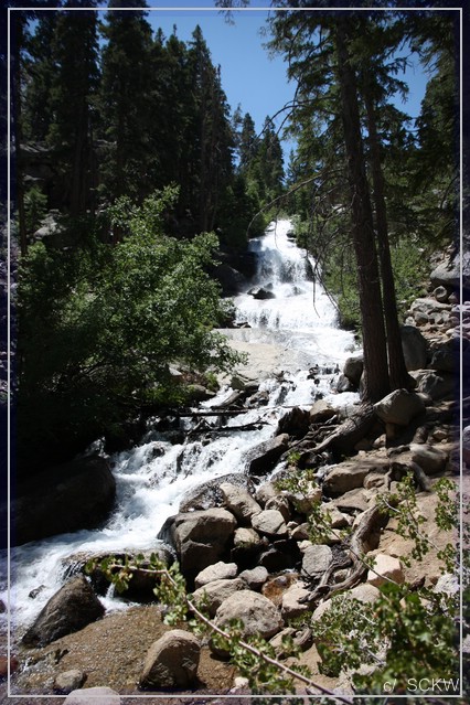Als erstes steuern wir unser Quartier an, die Sierra Nevada Lodge. Wir hatten keine Buchungsbestätigung bekommen und ich will sicher gehen, dass wir auch ein Bett für die Nacht haben.  8)  Problemlos können wir einchecken. Boxenstopp und die Frage: Was machen wir mit dem angebrochenen Nachmittag? Die Rainbow Falls wären sicher toll. Doch die Zeit ist etwas knapp für eine Shuttle-Fahrt plus mindestens 2,6 mi Wanderung. Devils Postpile lassen wir gleich außen vor, denn Bilder erinnern uns an Devils Tower 2009.