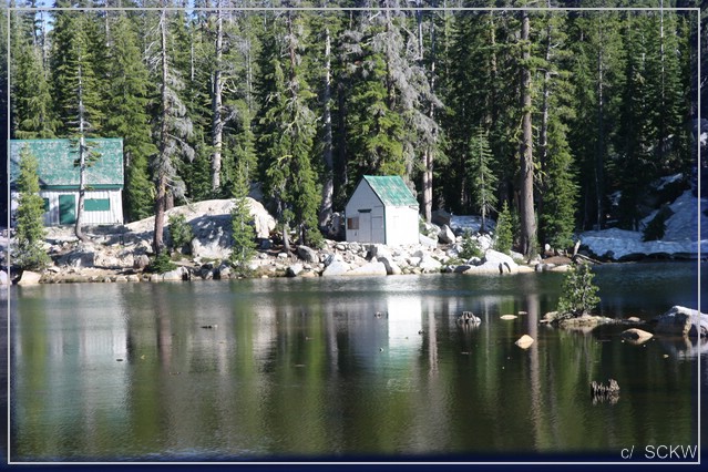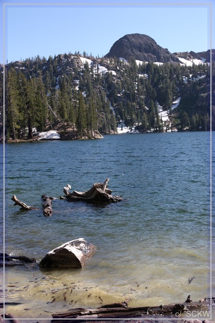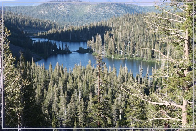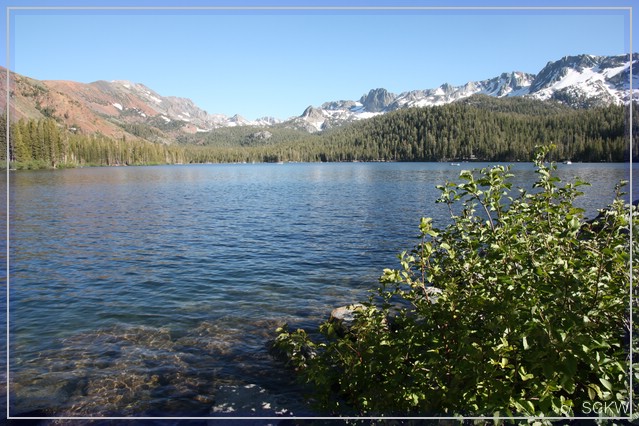 Also erstmal zu den Seen! In Windungen geht es die Old Mammoth Road hinauf. Überall unter den Bäumen stehen Häuser, Hütten und Chalets – ganz schön breit gestreut diese Ortschaft. Ein Stück wieder bergab treffen wir auf die Lake Mary Road und erreichen wenig später den gleichnamigen See. Jetzt brauchen wir nur noch einen Parkplatz. Wegen der zahlreichen Instandsetzungsarbeiten ist das tricky und High Clearance ratsam.