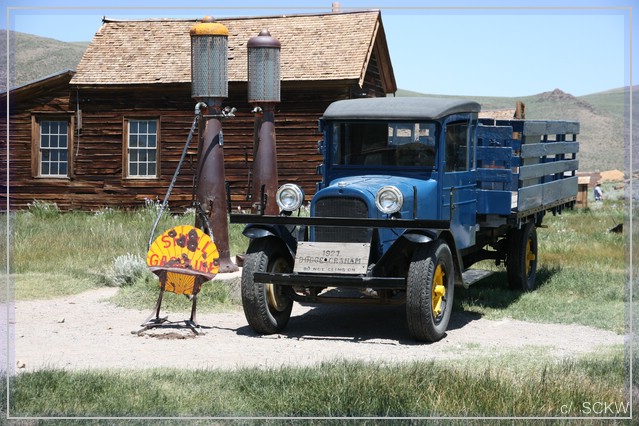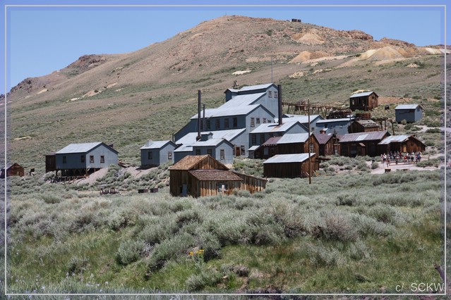 „We are going to Bodie“ , zu den Überresten der einst berüchtigten Minenstadt. Schon am Highway werden wir gewarnt, dass die Zufahrt momentan sehr rau sei.  Für die ersten Meilen des Hwy 270 trifft das ganz und gar nicht zu, die sind nämlich frisch geteert. Dann allerdings kommen die Schlaglöcher. Der Teil ist wirklich sogar schlechter zu fahren als die letzten drei offiziell unpaved Meilen.