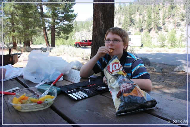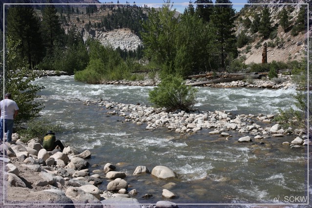 Auf der US 395 wenden wir uns wieder nach Norden. Langsam wird es Zeit für ein Picknick. Ein nettes Plätzchen finden wir am Walker River neben der Straße: die Shingle Mill Day Use Area.  Der wildrauschende Fluss sorgt für die Begleitmusik – und die Sirene vom Sheriff. Der macht wohl grad Jagd auf Temposünder.  :roll: