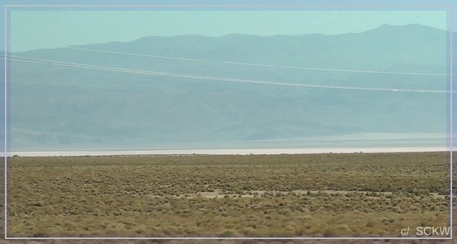 Nach einer guten Stunde in luftiger Höh wenden wir uns wieder dem Tal zu. Wir haben ja noch einiges an Strecke vor uns. Wunderbare Aussichten haben wir jetzt auf das Owens Valley. Es ist das tiefste Tal Nordamerikas mit einem Höhenunterschied von über 3200 m zwischen Mt. Whitney und Lone Pine. Wasserentnahmen für LA haben es  ziemlich trocken gelegt.