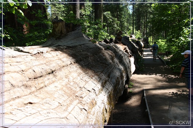 "Father of the forest", gefallen lange bevor die Amerikaner Mamutbäume entdeckten. War ein beliebter Fotospot, z.B. mit einer Kapelle oder einen Kavallerietrupp auf dem Stamm posierend. Der Stamm ist innen hohl und man kann hineingehen. Schon früher ein Spass für die Leute.