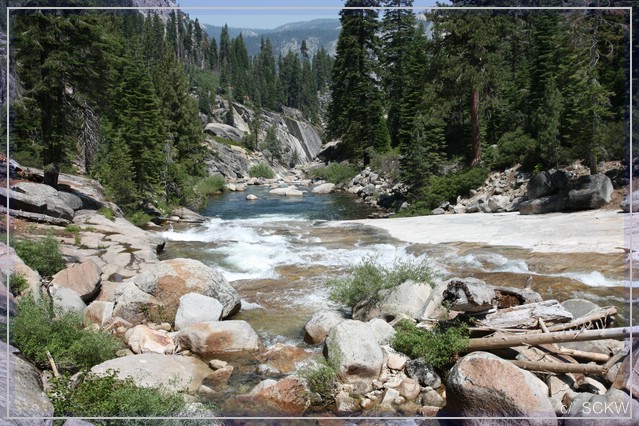 Ich habe zumindest die Beine ins Wasser gesteckt, um zu wissen, dass es wirklich lausig kalt ist. In ein paar Meilen Fahrt liegt noch der South Grove mit weiteren Mammutbäumen. Unter anderem den Größten des Parks. Der Trail dorthin dauert aber auch noch und wir haben ein Date heute Abend, so dass wir auf einen Besuch verzichten (müssen). Ich kann mich Herrn Grundmann nur anschließen: Der Grove hier ist ebenso sehenswert wie der Mariposa im Yosemite. Dabei viel ruhiger und gemütlicher.