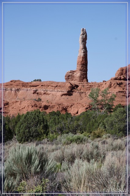 Später hin und wieder erspähen wir auch Rehe abseits der Fahrbahn. Also lieber etwas vorsichtiger und langsamer unterwegs. Übrigens, von Gewitter ist nichts zu spüren. Sonnenschein begleitet unseren Weg. Nur Richtung Moab sieht es finster aus und wir sehen Blitze zucken.