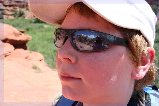 Die Onion Creek Road steht noch auf der Liste. Offroad mit dutzenden Creekquerungen. Sicherlich lustig, aber momentan ruft der Pool und zwar laut.  :lol: Ein kurzer Stopp noch im Giftshop. Kerlie braucht dringend ein neues Juniorranger-Shirt, das alte wird ihm langsam zu klein. Eigentlich sucht er auch noch genauso dringend so einen Trinkrucksack, wie die Rangerin hatte. Doch weitere Einkäufe werden erst mal aufgeschoben.