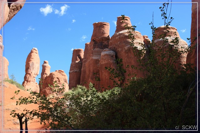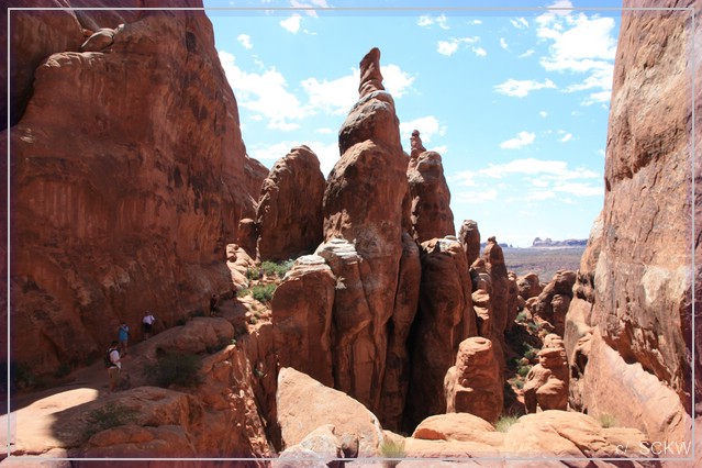 Dann geht’s  - viele werden es schon erraten haben – zum Fiery Furnace. Dafür braucht man entweder ein Permit oder schließt sich einer Führung an. Wir nutzen die Wartezeit zum Eincremen. Die Sonne strahlt wieder, doch noch sind die Temperaturen angenehm.