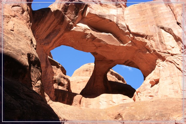 Ein Doppel Arch, und wenn man sich hinlegt, wird ein Totenschädel draus