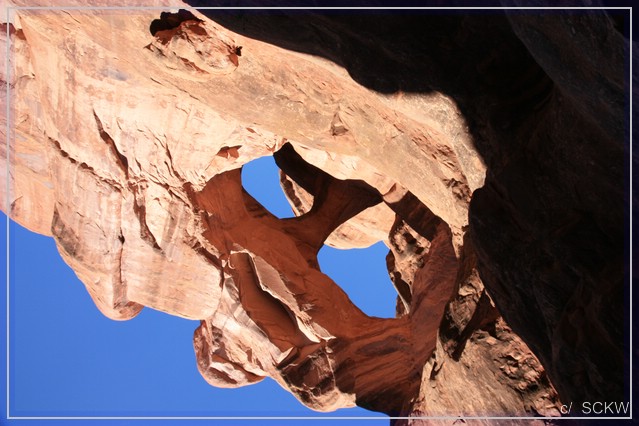 Um 7.45 Uhr schlagen wir im Visitorcenter des Arches NP auf, unsere Tourtickets abholen. Ich hatte nämlich sicherheitshalber schon von zu Hause gebucht.  Der Ranger vom Dienst zeigt uns noch ein paar Bilder, was uns so erwartet und vergewissert sich, dass wir das auch wirklich wollen. Klar, sieht nach Spaß und Abenteuer aus.   8)