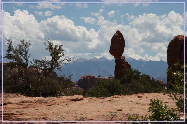 Mittlerweile ist es ziemlich heiß geworden. Nach dem dringend benötigten Boxenstopp suchen wir uns eine Picknick Area. Fündig werden wir in der Nähe vom Balanced Rock – tja der steht also immer noch.  :wink: