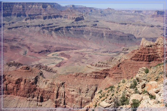 Wir treffen eine süddeutsche (oder Schweizer?) Familie, die bis zur ersten Aussicht auf den Colorado gelaufen sind. Natürlich sind die etwas eher los gekommen als wir. Aber sie haben auch ein ganz schön flottes Tempo drauf.  :shock: Tja, ein wenig Konditionstraining dürfte uns wohl nicht schaden  :oops: Meist bleibts aber bei dem guten Vorsatz