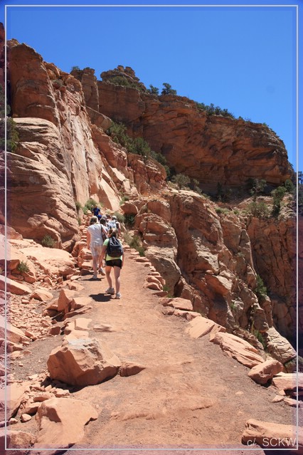 Ich finde ja immer Wanderungen doof, bei denen es zuerst bergab geht. Es ist so schwer einzuschätzen, wie das dann mit dem Rückweg wird. Entweder man läuft zu weit und kommt total fertig wieder oben an oder man ist oben und denkt: " War ja gar nicht so schlimm, warum bin ich bloß nicht weiter hinunter gegangen?" Aber am Grand Canyon lässt sich das ja kaum vermeiden... Und wenn ich schlanker und fitter wäre, würde sich dieses Problem vielleicht auch nicht auftun  :oops: