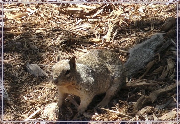 Ich hab mir nicht gemerkt, wie lange wir nun für den Weg bergauf gebraucht haben. Jedenfalls fährt uns natürlich oben der Shuttle wieder grad vor der Nase weg. Jetzt heißt es warten auf den hoffentlich nächsten. Ein paar Squirrel vertreiben uns dabei die Zeit.